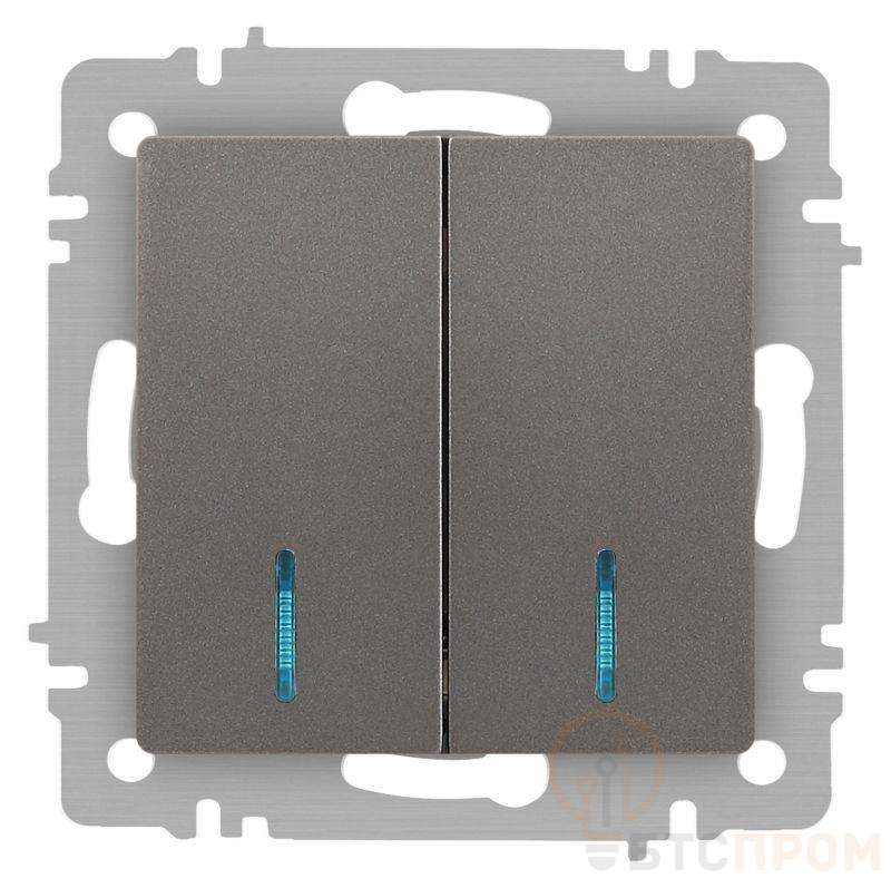 Выключатель 2-клавишный с подсветкой серии Intro Accent скрытой установки механизм цвет титан 6-105-09. Номинальные характеристики 10А 250В. Выполнен из негорючего термопласта, оснащён винтовыми клеммами. Парные клеммы обеспечивают соединение шлейфом. Монтаж в подрозетник производится и на лапки, и на винты. Рамка приобретается отдельно. В серии представлены рамки до 5 постов: на 1 пост - 6-501-хх, на 2 поста - 6-502-хх, на 3 поста - 6-503-хх, на 6 поста - 4-504-хх, на 5 постов - 6-505-хх (где хх - цветовой код: 01 - белый, 01М - матовый белый, 02 - слоновая кость, 03 - алюминий, 04 - шампань, 05 - антрацит, 06 - перламутр, 07 - графит, 08 - бронза, 09 - титан, 10 - венге, 11 - сосна)
