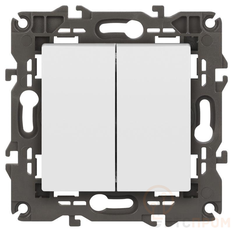 Выключатель 2-клавишный серии Эра Elegance цвет белый матовый 14-1104-01М. Характеристики 10А 250В. Оснащён автоматическими клеммами для надёжной фиксации жил кабеля в механизме. Рамки приобретаются отдельно.