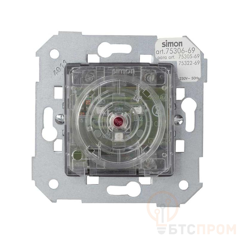 Выключатель кнопочный 1-кл. СП Simon 82/82Nature/88 10А IP20 с голуб. подсветкой доп. к 75305 75315 75322-69 механизм Simon 75306-69