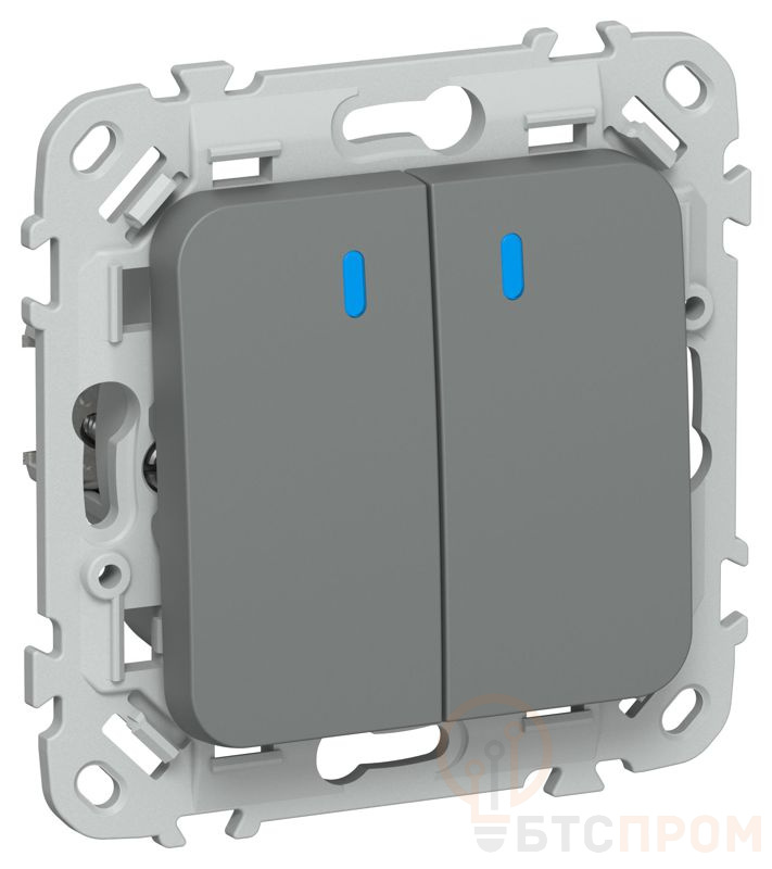 Выключатель кнопочный 2-кл. СП FLITE ВС12-2-1-ФлМА 10А с индикацией механизм мокрый асфальт IEK FI-V24-1-10-1-K80