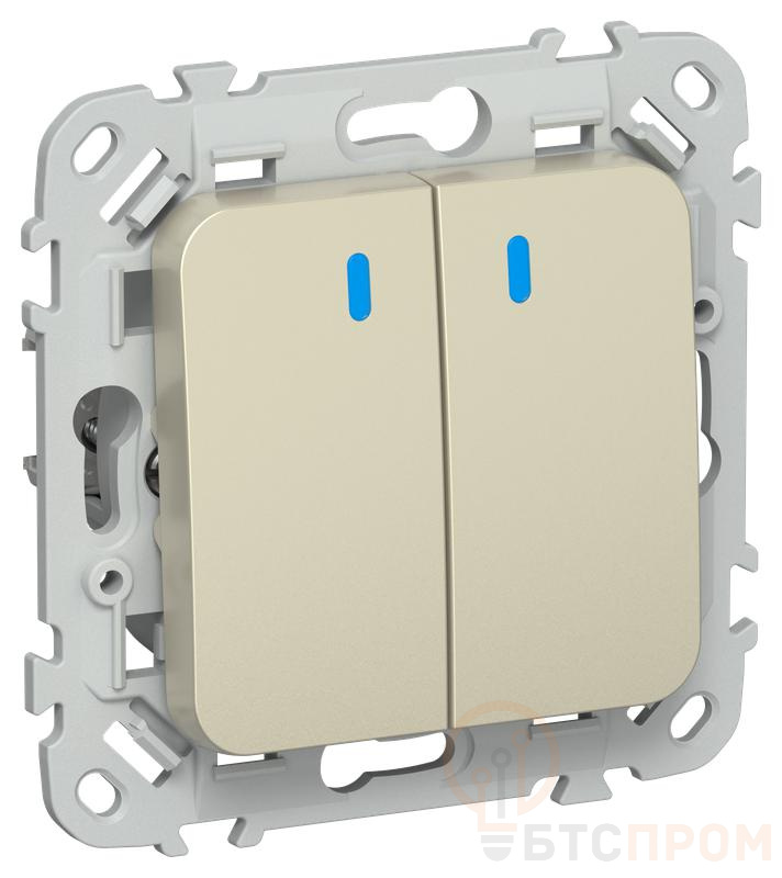 Выключатель кнопочный 2-кл. СП FLITE ВС12-2-1-ФлШ 10А с индикацией механизм шампань IEK FI-V24-1-10-1-K37