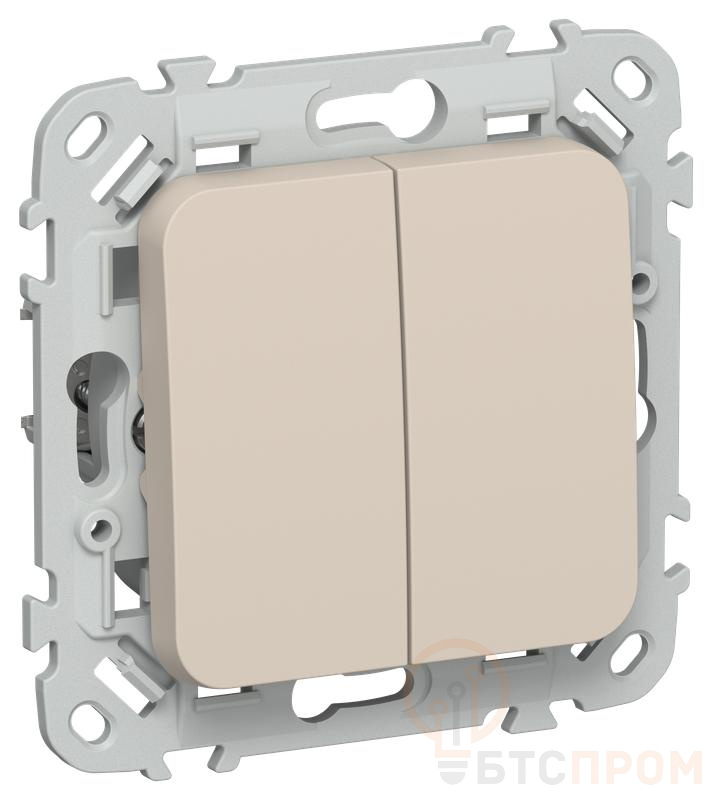 Выключатель кнопочный проходной 2-кл. СП FLITE ВС62-2-0-ФлЛ 10А механизм льняной IEK FI-V28-0-10-1-K88