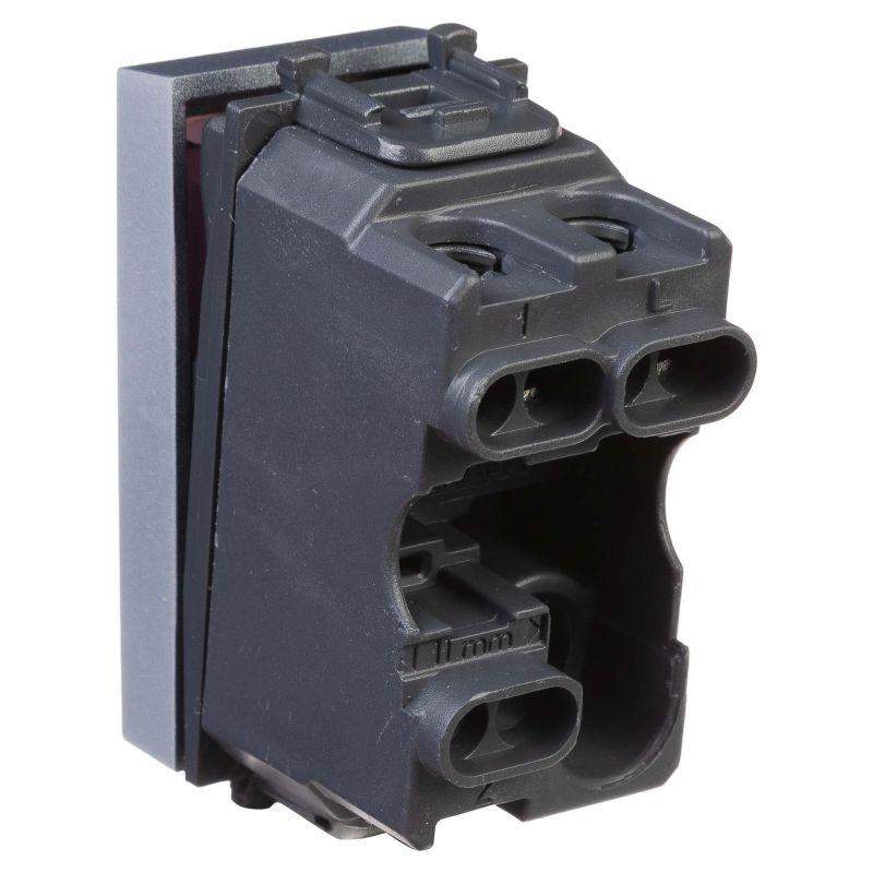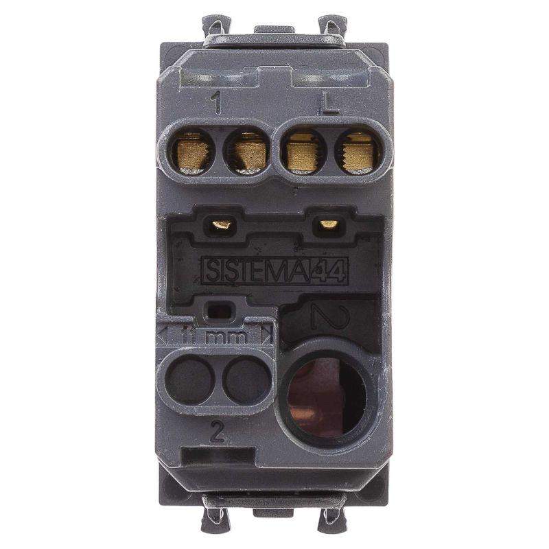 Выключатель одноклавишный однополюсный, модульный. Предназначен для монтажа в систему кабельных коробов "In-liner Front" и систему организации рабочих мест "Sotto" при помощи рамок-суппортов и каркасов "Avanti" (код 4400912 и т.д.); используется для включения/выключения освещения. Характеристики: диаметр отверстий для ввода кабелей – 3 мм (по 2 отверстия на одну клемму); винтовые зажимы; шаблон для зачистки кабеля – 11 мм; номинальный ток – 16 A; номинальное напряжение – 230 В; возможна фиксация в подрозеточные коробки при помощи каркаса с лапками (код 4400802) и саморезов. 1 модуль. Цвет: "Закаленная сталь". Производитель оставляет за собой право вносить во внешний вид изделия изменения, которые не влияют на его функционал, безопасность и надежность.
