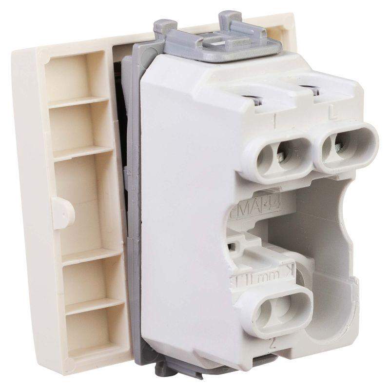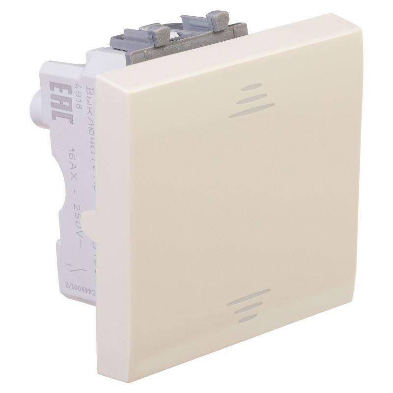 Выключатель одноклавишный однополюсный, модульный. Предназначен для монтажа в систему кабельных коробов "In-liner Front" и систему организации рабочих мест "Sotto" (алюминиевые кабель-каналы, колонны, башенки и лючки) при помощи рамок-суппортов и каркасов "Avanti" (код 4400912 и т.д.); Используется для включения/выключения освещения. Характеристики: диаметр отверстий для ввода кабелей – 3 мм (по 2 отверстия на одну клемму); винтовые зажимы; шаблон для зачистки кабеля – 11 мм; номинальный ток – 16 A; номинальное напряжение – 230 В; возможна фиксация в подрозеточные коробки при помощи каркаса с лапками (код 4400802) и саморезов. 2 модуля. Цвет: "Ванильная дымка". Производитель оставляет за собой право вносить во внешний вид изделия изменения, которые не влияют на его функционал, безопасность и надежность.