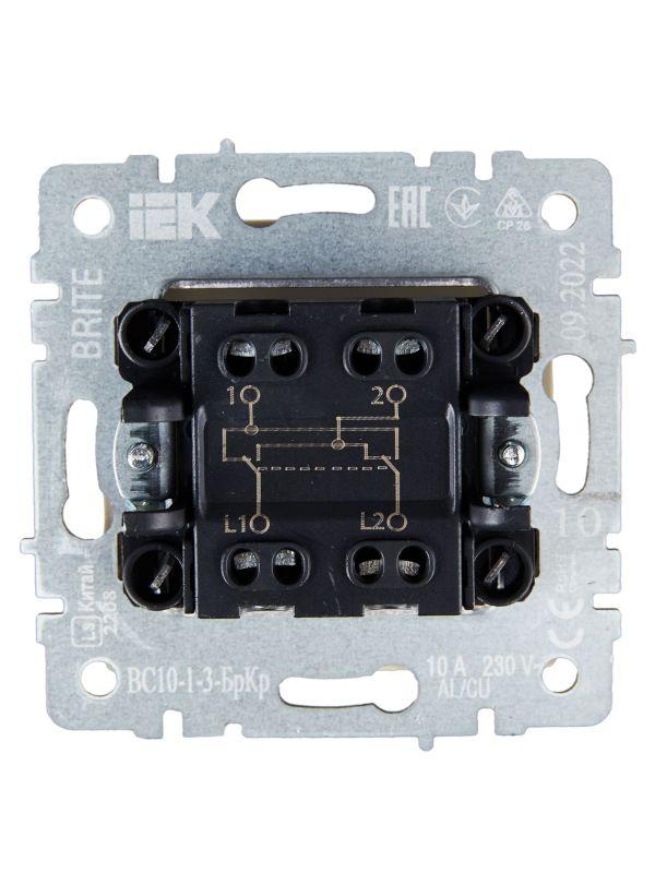 Выключатель перекрестный 1-кл. СП BRITE 10А ВС10-1-3-БрКр механизм беж. IEK BR-V13-0-10-K10 фото в каталоге от BTSprom.by