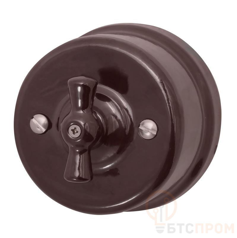 Выключатель поворотный 1-кл ОП ретро керамика корич. Bironi B1-200-02 фото в каталоге от BTSprom.by