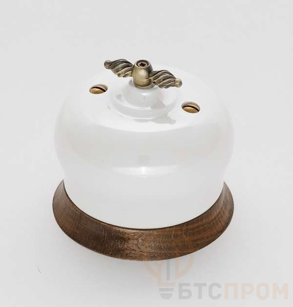 Выключатель поворотный 2-кл. ОП Фаберже 10А IP20 ретро 4 полож. в компл. с 1-м круглой рамкой Винтаж перламутр. Bironi B2-202-010/18