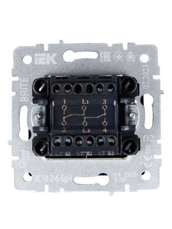 Выключатель проходной 2-кл. СП BRITE ВС10-2-6-БрЧ 10А механизм черн. IEK BR-V22-0-10-K02 фото в каталоге от BTSprom.by