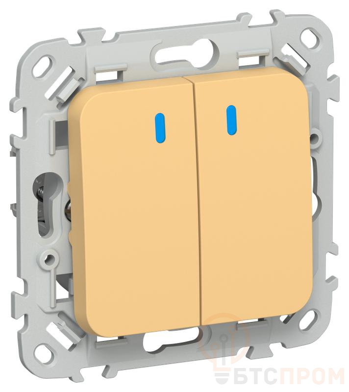 Выключатель проходной 2-кл. СП FLITE ВС62-1-1-ФлЗ 10А с индикацией механизм золотарник IEK FI-V22-1-10-1-K90