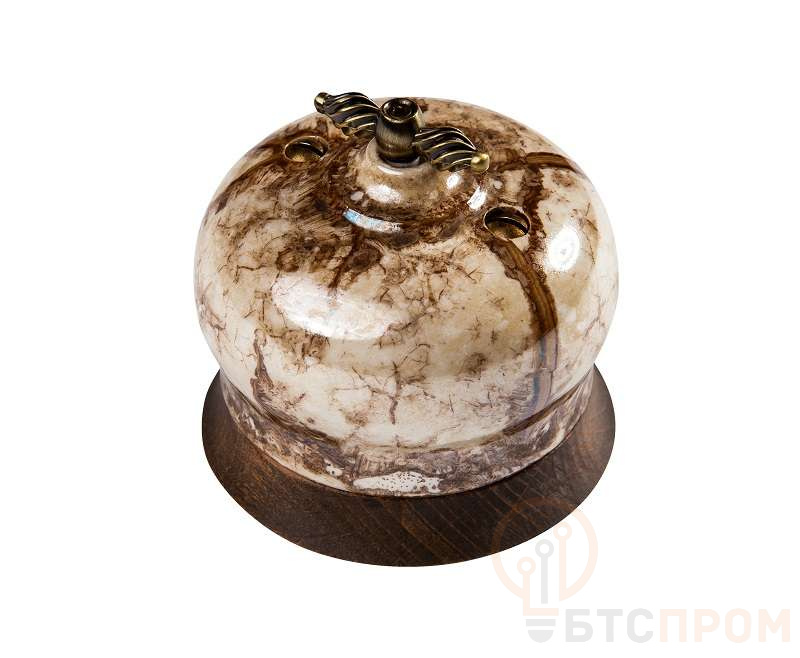 Выключатель проходной поворотный 1-кл. ОП Фаберже 10А IP20 ретро 2 полож. в компл. с 1-м круглой рамкой Винтаж зол. мрамор Bironi B2-201-090/18