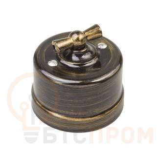 Выключатель проходной поворотный 1-кл. ОП Лизетта 10А IP20 ретро 2 полож. ABS-пластик бронз. Bironi B1-201-25