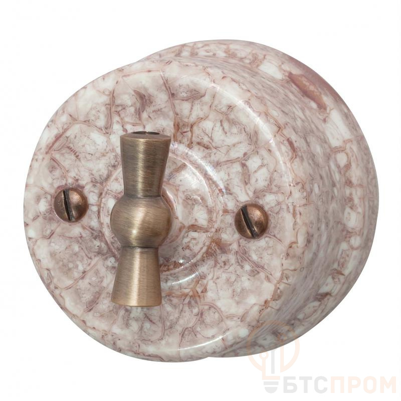 Выключатель проходной поворотный 1-кл. ОП Лизетта 10А IP20 ретро 2 полож. керамика мрамор Bironi B1-201-09
