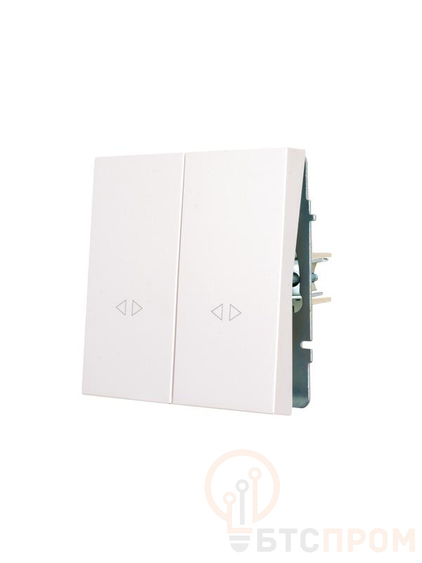Технические характеристики: номинальный ток 10А, степень защиты IP20, предназначен для скрытого монтажа. Устройство позволяет независимо управлять двумя группами освещения или другими электроприборами с одной установочной точки, что оптимально для зон с раздельным светом.