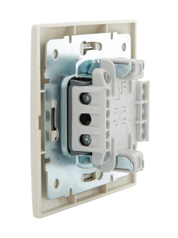 Ключевые характеристики: номинальный ток 10А, рабочее напряжение 250В. Устройство имеет три контакта (проходной переключатель) и предназначено для монтажа в стандартную монтажную коробку. Механизм отличается высокой износостойкостью (более 40 000 циклов включения/выключения) и безопасностью (с степенью защиты IP20).