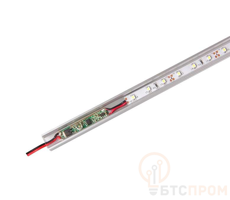 Выключатель сенсорный – удобное в применении устройство.Идеально подходят для установки в алюминиевый профиль PAL . Важно! Перед установкой в профиль следует извлечь выключатель из корпуса. Выключатель устанавливается в цепь между блоком питания и светодиодными источниками света согласно маркировки и с соблюдением полярности (красный провод «+», черный «–»). Выключатель сенсорный 2-х позиционный – 2 режима.