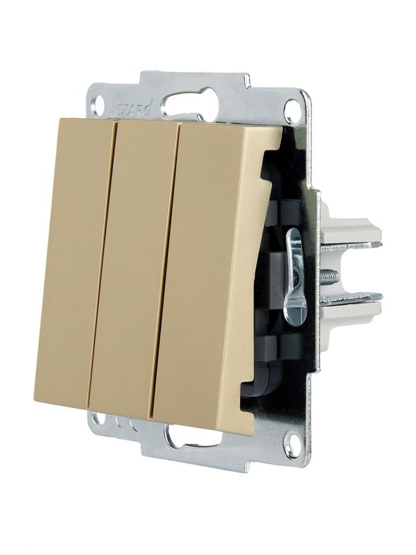 Выключатель тройной VESNA зол. LEZARD 742-3688-109 фото в каталоге от BTSprom.by