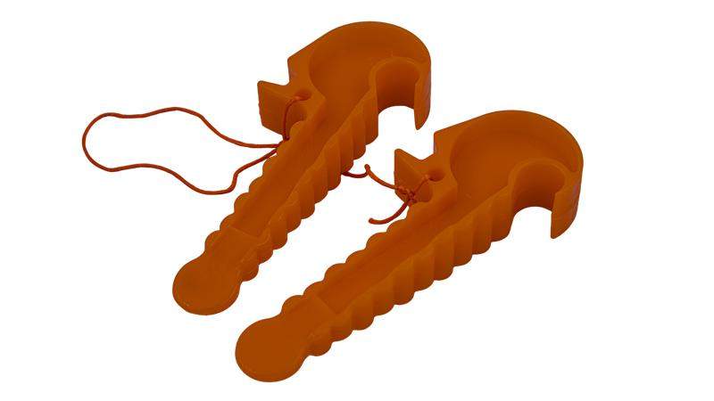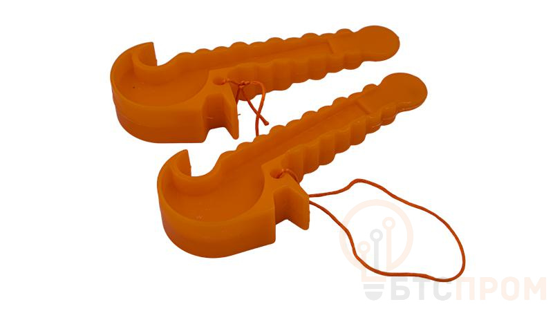 Разделитель фаз представляет собой комплект разделитильных клиньев, соединенных леской/шнуром. Применяется с целью отделения проводника, находящемуся в пучке проводников. В верхней части разделителя расположено полукруглое отверстие с заостренным наконечником, внешняя обойма разделителя имеет округлую форму, ось отделительного отверстия смещена относительно оси внешней обоймы, что придает отделителю функцию эксцентрика, позволяющему осущестлять отделение проводника из пучка, путем проворачивания разделителя по оси проводника. На внешней обойме расположен упор, который фиксирует отделенный проводник на расстоянии от пучка, исключая обратное перемещение эксцентрика. Отделение проводника происходит при помощи двух разделителей, устанавливаемых на провод по и против часовой стрелки, соответственно - для лучшей фиксации разделителей на пучке проводников. В нижней части рукояти разделителя реализована заостренная лопатка, служащая с целью первичного отделения проводника из пучка, а таже может быть использована как отделительный клин. Максимальное расстояние отдляемого провода от пучка, мм - 25