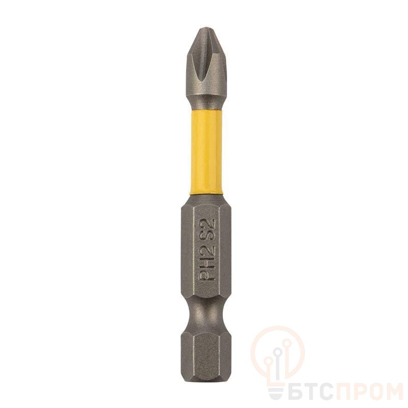 Бита PH2 используется в качестве сменной насадки на шуруповерт или отвертку-адаптер для работы с крепежом. Изготовлена из легированной высокопрочной стали S2, что дает повышенную устойчивость к изломам и деформации в наиболее нагружаемых точках касания. Торсионная зона позволяет работать ударным шуруповертом даже с особо твердыми поверхностями без риска поломки биты. Размер наконечника PH2 подходит для работы со шлицами с резьбовым диаметром 3,1-5 мм. Намагниченный наконечник облегчает крепление и фиксацию крепежа на бите. Шестигранный хвостовик надежно фиксирует биту в патроне инструмента и не дает ей проворачиваться. Благодаря хвостовику такая бита подойдет для установки на все виды шуруповертов и отверток-адаптеров.