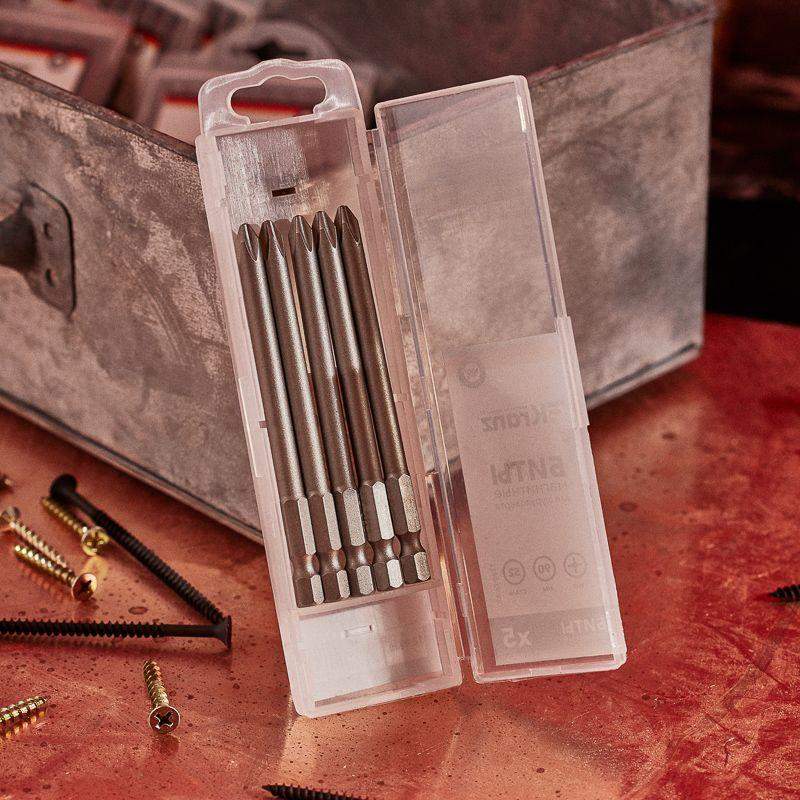 Бита PH2 используется в качестве сменной насадки на шуруповерт или отвертку-адаптер для работы с крепежом. Изготовлена из легированной высокопрочной стали S2, что дает повышенную устойчивость к изломам и деформации в наиболее нагружаемых точках касания. Длина стержня позволяет достать до шлицев в труднодоступных местах. Размер наконечника PH2 подходит для работы со шлицами с резьбовым диаметром 3,1-5 мм. Намагниченный наконечник облегчает крепление и фиксацию крепежа на бите. Шестигранный хвостовик надежно фиксирует биту в патроне инструмента и не дает ей проворачиваться. Благодаря хвостовику такая бита подойдет для установки на все виды шуруповертов и отверток-адаптеров. Удобная пластиковая групповая упаковка по 5 шт. обеспечивает удобство и дополнительную выгоду при отпуске товара по 1 шт.