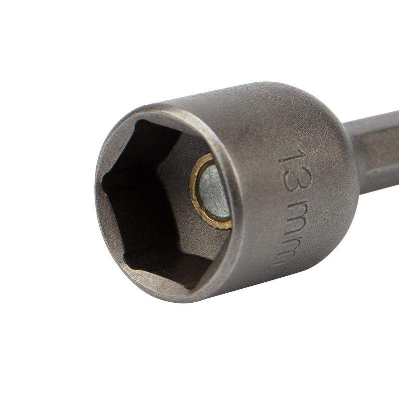Ключ-насадка предназначен для работы с кровельными саморезами, гайками и винтами с внешним шестигранником. Используется с шуруповертом, дрелью или с отверткой-адаптером. Изготовлен из высококачественной стали CrV, благодаря чему устойчив к статическим и динамическим нагрузкам и износу. Внутрь головки ключа впрессован магнит, который надежно удерживает крепеж. Шестигранный хвостовик обеспечивает надежное закрепление ключа в патроне инструмента и не дает проворачиваться ключу. Благодаря хвостовику подойдет для установки на все виды шуруповертов и отверток-адаптеров. Групповая упаковка по 20 шт. обеспечивает дополнительную выгоду при отпуске товара по 1 шт.