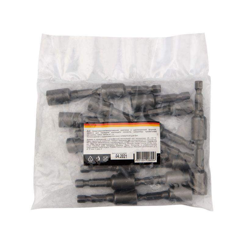 Ключ-насадка предназначен для работы с кровельными саморезами, гайками и винтами с внешним шестигранником. Используется с шуруповертом, дрелью или с отверткой-адаптером. Изготовлен из высококачественной стали CrV, благодаря чему устойчив к статическим и динамическим нагрузкам и износу. Внутрь головки ключа впрессован магнит, который надежно удерживает крепеж. Шестигранный хвостовик обеспечивает надежное закрепление ключа в патроне инструмента и не дает проворачиваться ключу. Благодаря хвостовику подойдет для установки на все виды шуруповертов и отверток-адаптеров. Групповая упаковка по 20 шт. обеспечивает дополнительную выгоду при отпуске товара по 1 шт.