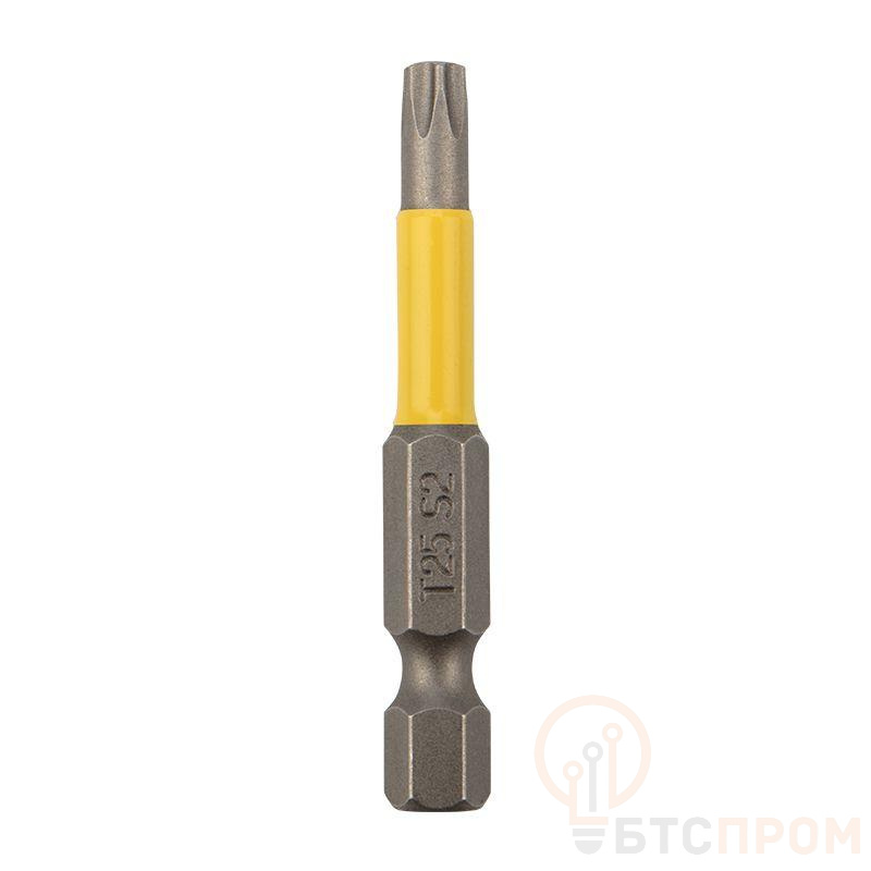 Бита T-25 используется в качестве сменной насадки на шуруповерт или отвертку-адаптер для работы с крепежом. Изготовлена из легированной высокопрочной стали S2, что дает повышенную устойчивость к изломам и деформации в наиболее нагружаемых точках касания. Размер наконечника T-25 подходит для работы со шлицами с резьбовым диаметром 4,43 мм. Намагниченный наконечник облегчает крепление и фиксацию крепежа на бите. Шестигранный хвостовик надежно фиксирует биту в патроне инструмента и не дает ей проворачиваться. Благодаря хвостовику такая бита подойдет для установки на все виды шуруповертов и отверток-адаптеров.