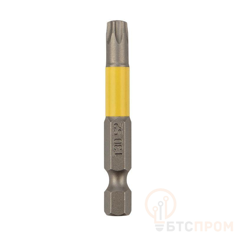 Бита T-30 используется в качестве сменной насадки на шуруповерт или отвертку-адаптер для работы с крепежом. Изготовлена из легированной высокопрочной стали S2, что дает повышенную устойчивость к изломам и деформации в наиболее нагружаемых точках касания. Размер наконечника T-30 подходит для работы со шлицами с резьбовым диаметром 5,25 мм. Намагниченный наконечник облегчает крепление и фиксацию крепежа на бите. Шестигранный хвостовик надежно фиксирует биту в патроне инструмента и не дает ей проворачиваться. Благодаря хвостовику такая бита подойдет для установки на все виды шуруповертов и отверток-адаптеров.