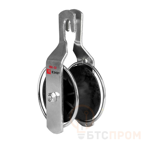 Ролик монтажный RM50 EKF PROxima. Артикулы: rm-50 Ролик применяется для раскатки СИП и оптоволоконного кабеля по опорам. Диск выполнен из термо-ударостойкого полимера со стальной отбортовкой. Крепится на опоре при помощи разводных стальных подвесов. Возможен монтаж на линиях с углами до 30°.