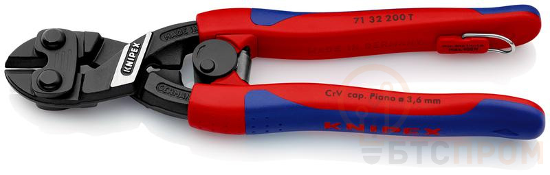 Болторез компактный с пружиной с выемкой на кромках для реза толстой проволоки L-200мм Knipex KN-7132200T