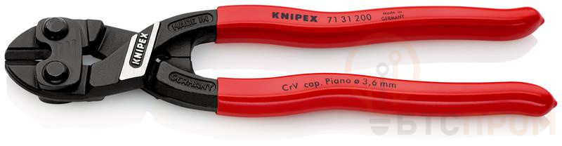 Болторез компактный Knipex KN-7131200 – это профессиональный инструмент, предназначенный для высокоэффективной резки толстой проволоки, кабелей и металлических прутков. Модель отличается своей надежностью и эргономикой, что делает ее незаменимой в монтажных и ремонтных работах.