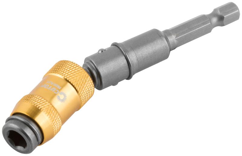 Адаптер шарнирный угловой с магнитным держателем для бит Cutop из инструментальной стали необходим при монтаже крепежа в труднодоступных местах (когда сложно работать оснасткой с прямым держателем). Шарнирный механизм позволяет работать при наклоне до 25 градусов. Биты не срываются и не повреждают поверхность.