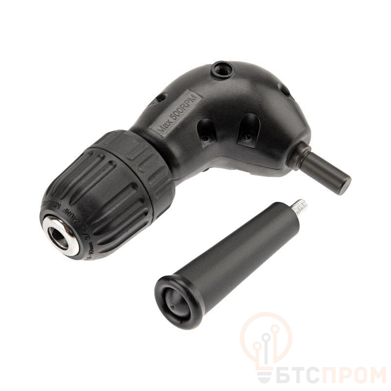 Угловая насадка предназначена для удобного и эффективного сверления и закручивания саморезов в труднодоступных местах при помощи дрели. Насадка позволяет просверлить отверстие или закрутить саморезы под углом в 90 градусов, что значительно расширит спектр проводимых работ. Быстрозажимной патрон позволяет работать с различными типами оснастки и надежно их фиксировать. Рукоятка облегчает нагрузку при работе. Инструмент выполнен из ударопрочного пластика и цинкового сплава. Перед работой необходимо проверить наличие смазки на металлических частях.