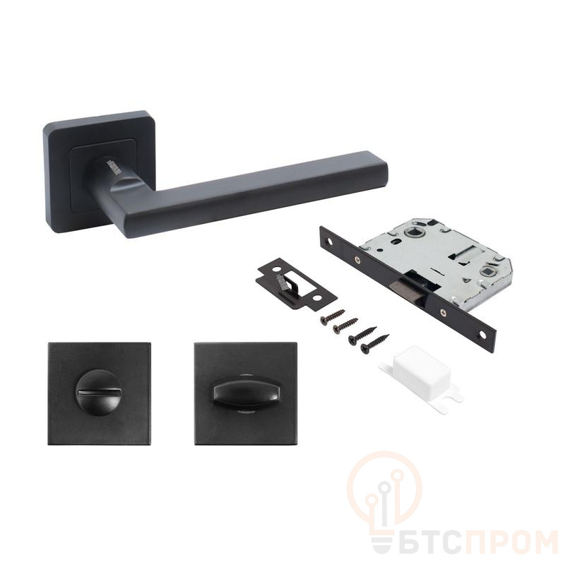 АЛЛЮР АРТ "ВЕНСАН" BL+L7050S BL+BK-S1 BL (26150/S7050) матовый черный Компл ручка и защ с фикс (20), , Комплект: ручка на квадратной накладке, сантехническая завертка и защелка с фиксацией .Материал ручек и завертки — алюминиевый сплав, защелки - сталь. Многослойное гальваническое покрытие. Комплектуются винтовыми стяжками и шурупами. Длина разрезного квадрата - 95мм. Для деревянных дверей, толщиной 35-40 мм. Гарантийный срок эксплуатации — 3 года.