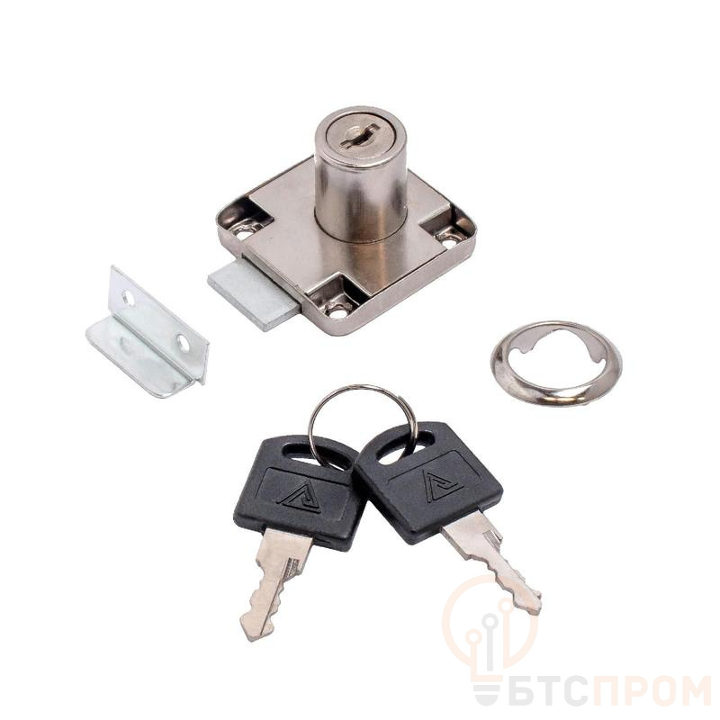 Мебельный замок, устанавливается на двери и ящики максимальной толщиной - 22мм. Цвет - хром. Комплектация: замок, 2 ключа, декоративная накладка, ответная планка. Материалы - цинковый сплав, сталь.