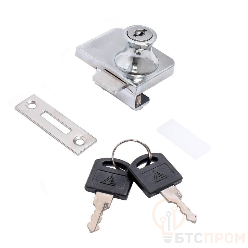 Замок для шкафов и витрин.Предназначен для запирания стеклянных распашных дверей внутреннего расположения. Замок устанавливается без сверления стекла. Максимальная толщина стекла - 8 мм. Материал изготовления : цинковый сплав, сталь В комплекте : 2 ключа, ответная планка,крепеж