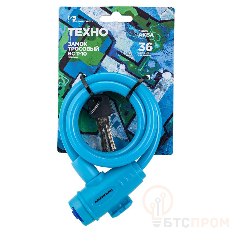 АВАНГАРД ВС-Т10 (1000 мм) ТЕХНО АКВА Замок велосипедный тросовый (60,10), Замок навесной с тросом. Материал корпуса - сталь покрыта пластиком. Стальной трос в пластиковой оплетке (10мм - диаметр, 1000мм - длина). Цилиндровый механизм секрета, в комплекте 2 перфоключа. Защитная шторка на скважине препятствует попаданию в механизм грязи и влаги. Возможно использование с креплением на раму АВАНГАРД ВК-062 (приобретается отдельно). Предназначен для запирания дверей, ворот, а также для предотвращения хищения велосипедов, детских колясок, санок, лодочных моторов и др. предметов.
