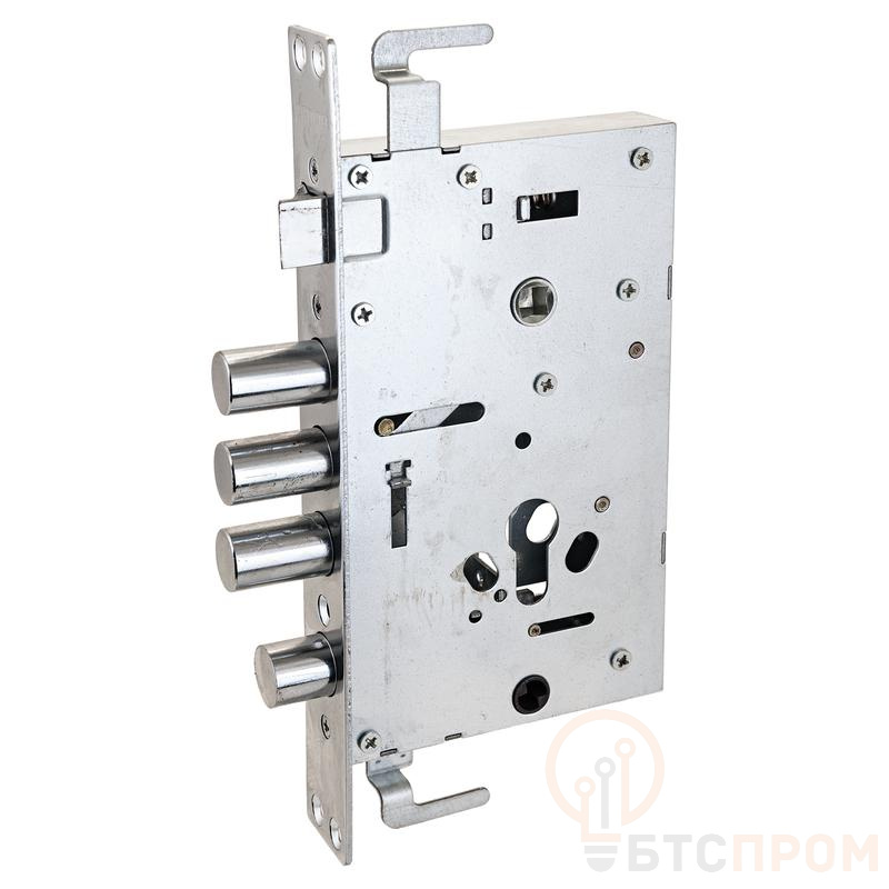 АЛЛЮР ЗВ1-08А-C AТМ-R правый автомат.без ц/мех.б/о для кит.металл.дверей Замок врезной б/руч (20), , Замок врезной цилиндровый с защелкой и задвижкой, без механизма секрета. Предназначен для установки в правые китайские металлические двери, в качестве основного замка. Замок закрывается снаружи автоматически, поднятием ручки вверх. Три цилиндрических стальных ригеля, диаметр - 18мм. Вылет ригелей - 27,7 мм. 3 точки запирания. Корпус замка - сталь, толщиной 1,1мм. Удаление ключевого отверстия 60мм. Межосевое расстояние 68мм. Расстояние от центра механизма секрета до задвижки 52мм. Цвет торцевой планки - хром, ширина 30мм.