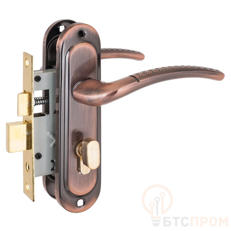 СТАНДАРТ 132/50B вертушка AC старая медь Замок врезной с/руч (30), , Замок врезной с ручками. Предназначен для установки в деревянные двери толщиной до 40мм, правого и левого открывания. Дверь может быть закрыта на защелку и открыта с помощью фалевой ручки при открытом засове замка. Прямоугольный ригель, вылет 16мм. Универсальная защелка. Стальной корпус, покрытие эмаль. Межосевое расстояние 50мм. Удаление ключевого отверстия 40мм. Гальваническое покрытие ручек, материал алюминий. Механизм секрета с уменьшеной высотой профиля, длина ц/м 68 мм, ключ-вертушка, 5 ключей,цвет цилиндра - латунь.