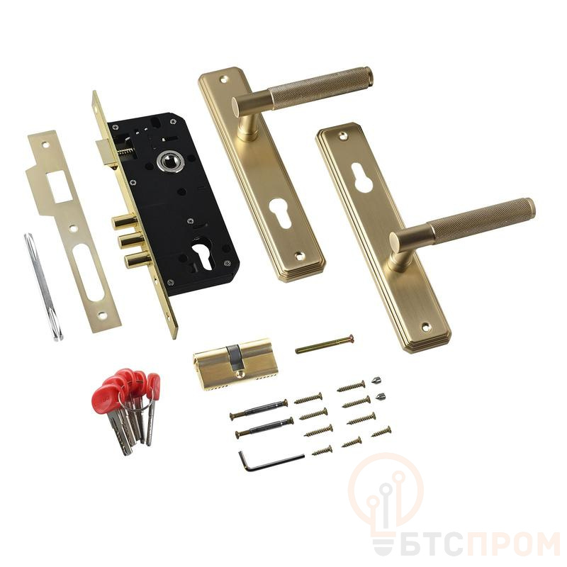 Замок врезной с ручкой ЗВ4-3.02.06 ФЕРОНА 5 перфорир. ключей матов. золото Булат 15 707 фото в каталоге от BTSprom.by