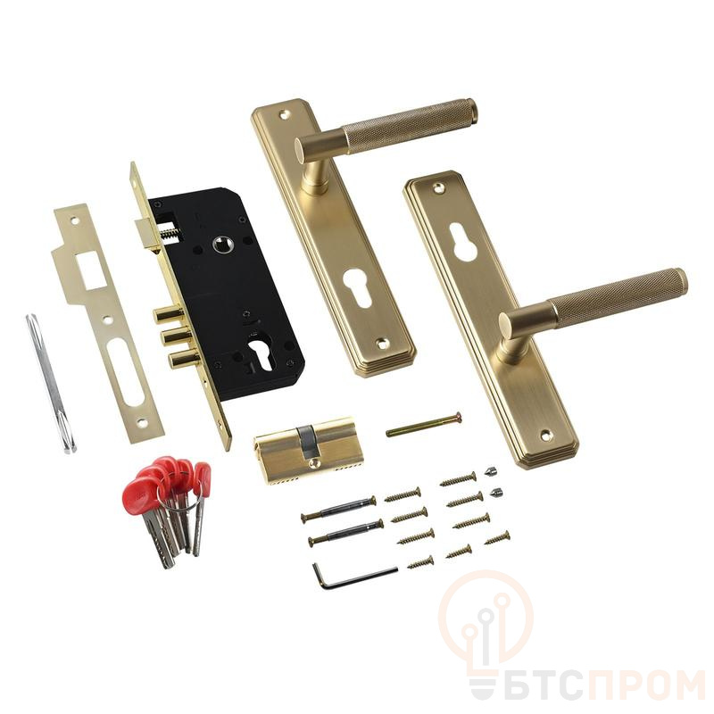 Замок врезной с ручками. Предназначен для установки в деревянные двери толщиной 35-38 мм, правого и левого открывания. Дверь может быть закрыта на защелку и открыта с помощью фалевой ручки при открытом засове замка. Три круглых стальных ригеля диаметром 12 мм. Универсальная защелка. Стальной корпус покрыт полимерной краской. Межосевое расстояние 70 мм. Удаление ключевого отверстия 45мм. Материал ручек - сталь. Комплектация: латунный цилиндровый механизм 62мм, 5 перфоключей, ответная планка, винтовые стяжки.