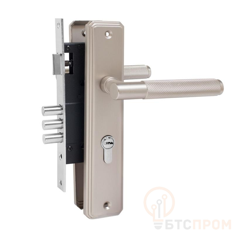 Замок врезной с ручкой ЗВ4-3.70.02.08 ФЕРОНА 5 перфорир. ключей матов. никель Булат 15 005 фото в каталоге от BTSprom.by