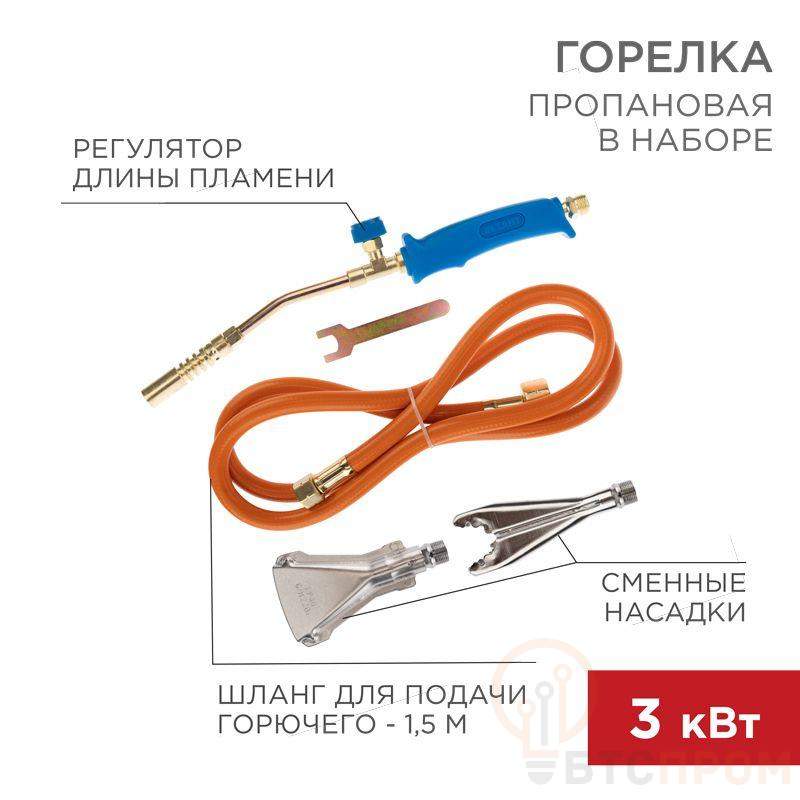 Горелка пропановая REXANT ГВП-400К – это мощный инструмент для нагрева, резки и пайки металлов. Качественная газовоздушная горелка с эргономичной нескользящей рукояткой обеспечивает максимальный комфорт при проведении различных работ. Все элементы набора выполнены из износостойких и жаропрочных материалов, рассчитанных на частую эксплуатацию в профессиональных мастерских. В комплект входят три насадки – точечная, плоская и насадка для нагрева по окружности. Плоская насадка подойдет для нагрева поверхностей, насадка нагрева по окружности – для нагрева труб. Пропановая кровельная горелка отличается практичностью и долговечностью. С помощью вентиля легко управлять подачей газа. Предварительно необходимо тщательно очистить рабочую поверхность от мусора и остатков старого покрытия. Подсоединение устройства к баллону (или редуктору при наличии на нем соответствующей резьбы) осуществляется при помощи резьбового соединения W21.8х1/14LH.