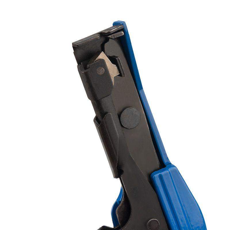 Монтажный инструмент ПС-600А предназначен для затяжки и обрезки нейлоновых стяжек шириной 2,2–4,8 мм. Конструкция позволяет одним нажатием на курок затягивать стяжку и обрезать излишки полотна. Облегченный корпус инструмента изготовлен из алюминиевого сплава с ударопрочным напылением, благодаря чему снижает нагрузку на руку, а металлический затягивающий механизм отличается высокой надежностью. Инструмент оснащен плавным (бесступенчатым) регулятором усилия затяжки, который служит для точной настройки инструмента в зависимости от задач. Курок инструмента покрыт нескользящим резиновым материалом, который обеспечивает надежный хват и препятствует проскальзыванию инструмента в ходе работы.