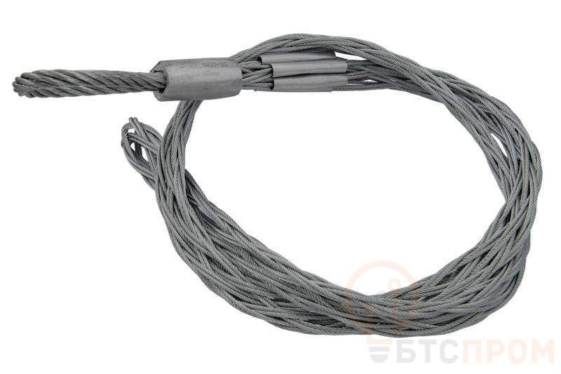 Чулок монтажный служит с целью соединения проводников круглого сечения с тросом-лидером, при протяжке проводов при строительстве воздушных линий электропередач. Чулок - представляет собой плетеный из проволок пружинной стали трос, сплетенный в чулок. Конец чулка представляет собой опресованную косичку, образовавшую петлю. Петля чулка соединяется с тросом-лидером посредством вертлюга, во избежание перекручивания провода, в процессе его протяжки. Монтаж на провод осуществляется путем сжатия чулка по его длине, тем самым происходит увеличечение диаметра отверстия для легкой установки чулка на проводник, чулок устанавливается на всю рабочую длину до места опрессовки. При протяжке провода посредством передачи тяжения на петлю чулка, происходит растяжение жил чулка, тем самым усиливая прочность заделки проводника, исключая его проскальзывание. Рабочая длина, мм - 1030 Диаметр проводника, мм - 20-30 Материал проволок - оцинкованная пружинная сталь