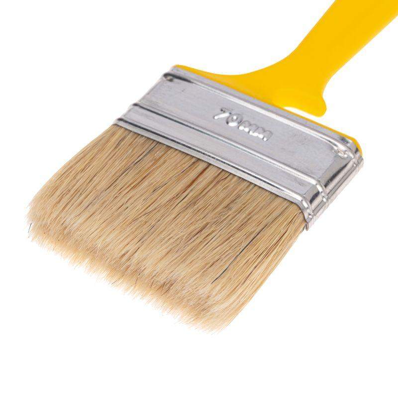 Кисть REXANT «Эмали» – самая востребованная для всех распространенных работ с агрессивными лакокрасочными материалами: радиаторы, трубы, деревянные окна и так далее. Они рекомендованы к применению для фасадных работ и работ с древесиной. Светлая натуральная щетина позволяет равномерно распределить лакокрасочные материалы на любой поверхности. Эргономичная пластиковая ручка кисти удобна в применении. Технические характеристики: Тип: кисть плоская Размер кисти: 70х12 мм Длина щетины: 51 мм Длина ручки: 130 мм Материал рукояти: пластик Материал бандажа: металл Щетина: натуральная
