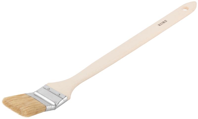 Кисть радиаторная КУРС предназначена для работы со всеми видами лакокрасочных материалов. Используется для окраски батарей, работы в труднодоступных местах. Натуральная щетина отличается высокой впитываемостью и наполняемостью краской. Деревянная ручка эргономичной формы удобно лежит в руке. Отверстие в рукоятке дает возможность хранить и сушить кисть в подвешенном положении.