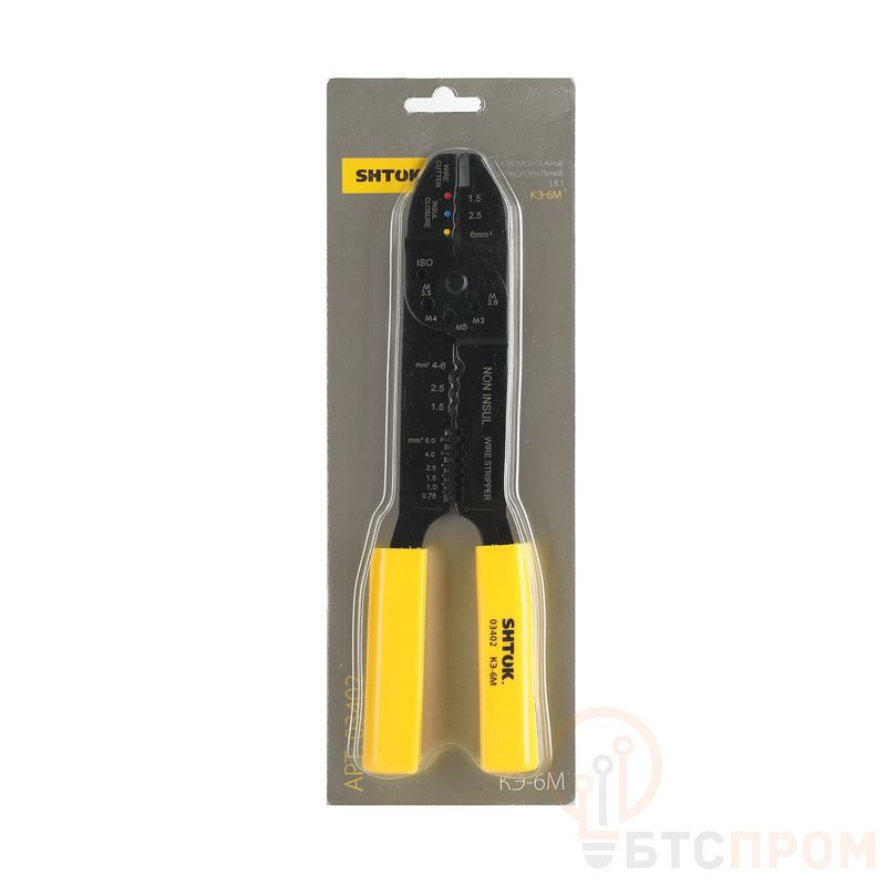 Клещи электромонтажные КЭ-6М (03402) от SHTOK – профессиональный ручной инструмент для выполнения широкого спектра электромонтажных и сборочных работ. Изготовлены из высококачественной инструментальной стали с защитным покрытием, что обеспечивает долговечность и коррозионную стойкость.