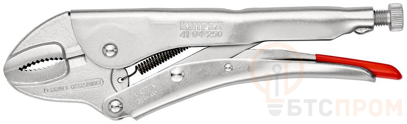 Зажим ручной с фиксацией Knipex KN-4104250 – это профессиональный инструмент, созданный для выполнения самых тяжелых задач. Модель длиной 250 мм изготовлена из высококачественной оцинкованной стали, что обеспечивает превосходную коррозионную стойкость и длительный срок службы даже в неблагоприятных условиях.