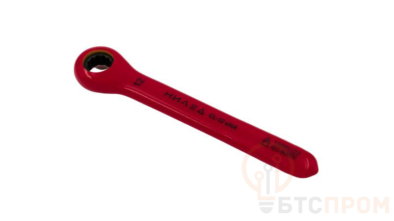 Ключ накидной храповой(трещоточный) изолированный используется для откручивания и закручивания болтовых соединений на распределительных устройствах, кабельных и воздушных линиях. Трещоточный механизм позволяет применять ключ в ограниченном пространстве, обеспечивая высокий крутящий момент. Инструменты, изготовлены в соответствии с ГОСТ IEC 60900-2019 - способствуют повышению безопасности пользователей в случае их применения квалифицированными специалистами в соответствии с безопасными методами работы и инструкциями по эксплуатации (при необходимости). Материал головки - CrMo Материал рукояти - CrV Материал изоляции - PVC (пластизоль) Твердость головки - 52-56 HRC Твердость рукояти - 42-50 HRC Размер головки, мм - 12
