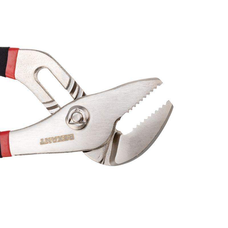 Клещи переставные REXANT предназначены для фиксации заготовок, захвата различных деталей и элементов во время проведения столярно-слесарных, сантехнических, слесарных, сборно-разборных и других видов работ. Хромованадиевый сплав, из которого изготовлен инструмент, обладает такими свойствами, как прочность, жесткость, устойчивость к износу. Во время прокаливания такой сплав менее подвержен деформациям и потере первоначальной формы, чем другие типы инструментальной стали. Никелевое покрытие защищает клещи от образования ржавчины, продлевает их срок службы. Эргономичная форма усиленных обливных рукояток создает дополнительный комфорт при работе. Зубцы на губках обеспечивают надежный хват деталей.
